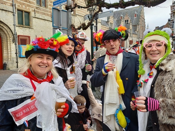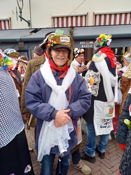 Mijn tennis-teamleden hebben mij zo ver gekregen dat ik me een middag in het carnavalsgewoel heb begeven. In Bergen op Zoom heet carnaval overigens “Vastenavend”. Aangezien ik geen geschikte outfit voor deze gelegenheid had, brachten twee van mijn teamleden enkele geschikte “kledingsstukken” mee voor mij. Toen ik het centrum van Bergen op Zoom inliep, nog in mijn normale kleding, was ik een soort bezienswaardigheid tussen de drommen mensen in carnavalskleding. Zodra mijn teamgenoten mij ontdekt hadden in de mensenmassa werd ik voorzien van de noodzakelijke versierselen.