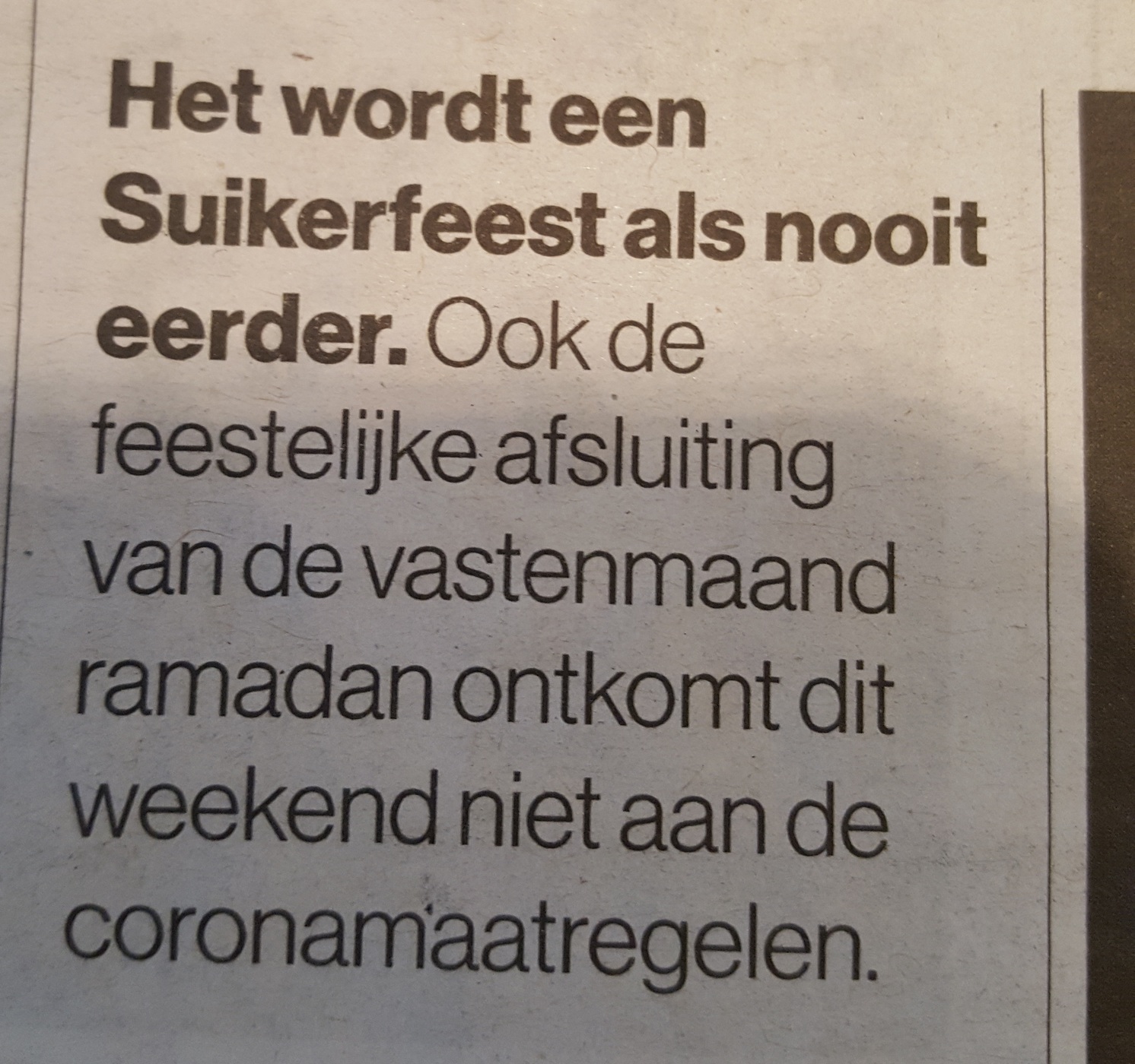 Of het suikerfeest dat dit jaar een beetje aangepast moet worden