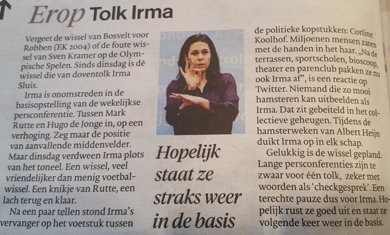 Ook niet over die geweldige gebarentolk die meer aandacht trekt dan Mark Rutte.