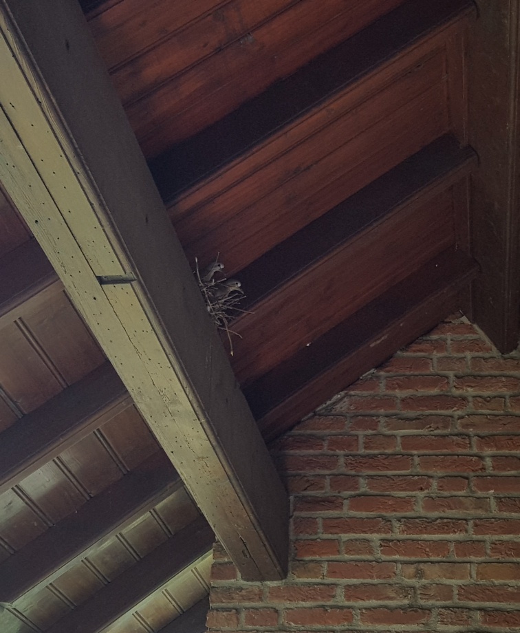 Bij het merelnest in de knot-esdoorn is het momenteel af-en-aan vliegen van beide ouders met wormen voor de jongen. Aan de voorkant van ons huis heeft een duivenechtpaar een nest gemaakt onder de dakoverstek. Een heel veilige plek waar bijna ieder jaar wel duiven of merels nestelen.
