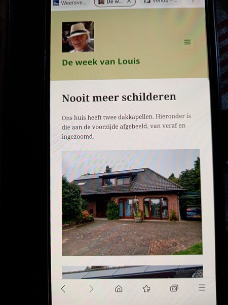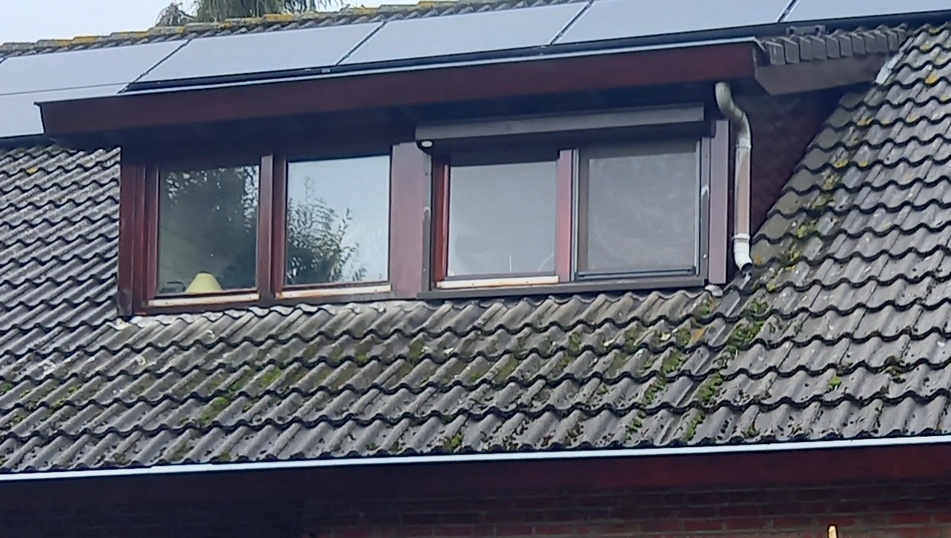 Ons huis heeft twee dakkapellen. Hieronder is die aan de voorzijde afgebeeld, van veraf en ingezoomd.