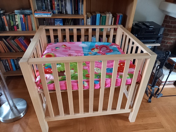 Binnen enkele weken zal er een nieuwe telg geboren worden in onze familie. Daar heb ik al eens eerder gewag van gemaakt. Deze week hebben we onze uitzet uitgebreid met een tweedehands box met matrasje en boxkleed. Matras en boxkleed zijn niet door de keuring van mijn dochter gekomen. Matras mag niet in een box en boxkleed is niet van het juiste materiaal.