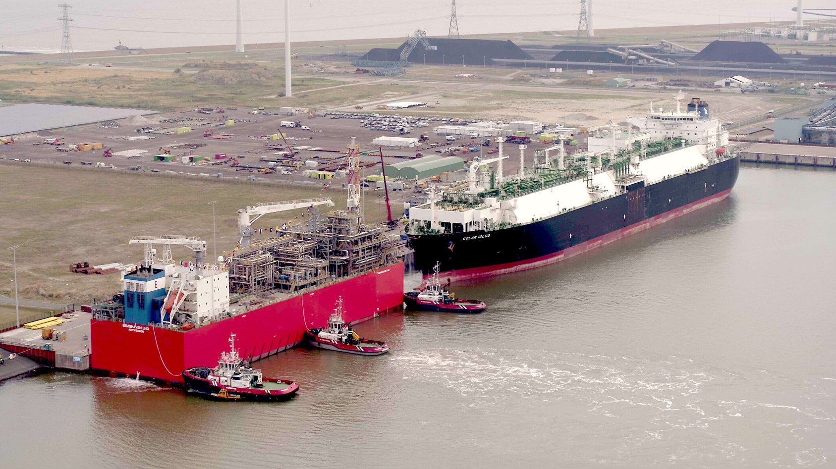 In de Eemshaven ligt een drijvende terminal mét een installatie om stikstof toe te voegen.