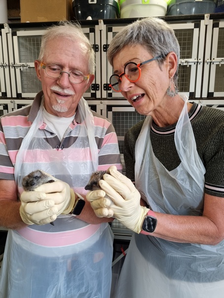 Mevrouw Scheeres, samen met haar man de oprichters van de egelopvang, heeft ook de medische verzorging van zieke egels laten zien. Egels worden vaak (ernstig) ziek of verminkt (door bosmaaiers, robotmaaiers, honden) binnengebracht. Vaak zijn antibiotica nodig en soms een operatie of amputatie. Het gaat heel slecht met de egels in Nederland. Daar zijn meerdere oorzaken voor, maar een belangrijke oorzaak is het verdwijnen van leefomgeving doordat tuinen vol gelegd worden met tegels. De egelopvang probeert te redden wat er te redden valt en wij dragen een steentje bij door de egel in onze tuin goed te verzorgen en door een mooie donatie aan de egelopvang.