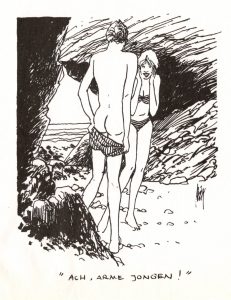 In juli en augustus heb ik op de woensdagen bardienst samen met Jan van T. Wij bedienen fietsers en wandelaars die in ons dorpshuis iets komen drinken. Meestal zit het terras de hele dag vol, tenzij het slecht weer is. Het is leuk werk want er ontstaan vaak leuke gesprekken en je ontmoet soms bijzondere mensen. Een aantal bezoekers is vaste klant. Zo komt er iedere woensdagmiddag een vrouw met haar invalide echtgenoot en een vriendin. De man van middelbare leeftijd is getroffen door een beroerte en kan helemaal niets meer. Hij zit slapend in een rolstoel. De vrouwen nemen altijd koffie met appeltaart. Twee weken geleden bleef de man in de rolstoel in de auto (rolstoel had een lekke band) en vroeg de vrouw of ik een kopje thee naar de auto wilde brengen. Dat verbaasde me want de man slaapt altijd en neemt nooit iets. Bij de auto aangekomen bleek er nog een derde vrouw in de auto te zitten om op de man te passen. De thee was voor die vrouw.
