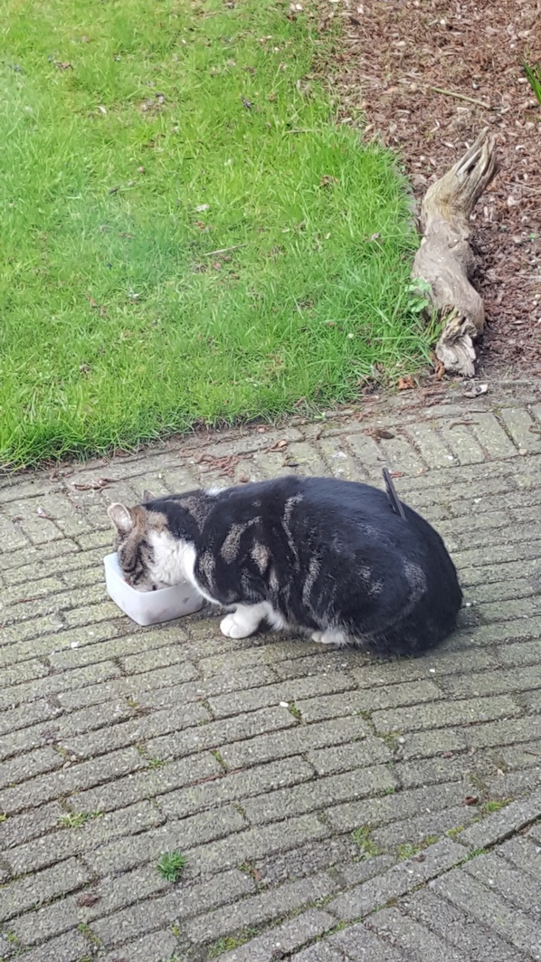 Voor de lezers die het niet weten, Ivo is onze wilde kat. Al jaren is hij bij ons in de tuin. Iedere ochtend en middag zit hij braaf en geduldig te wachten op zijn eten