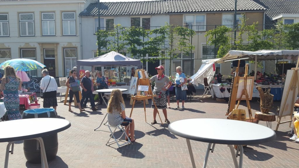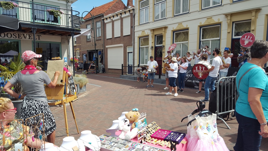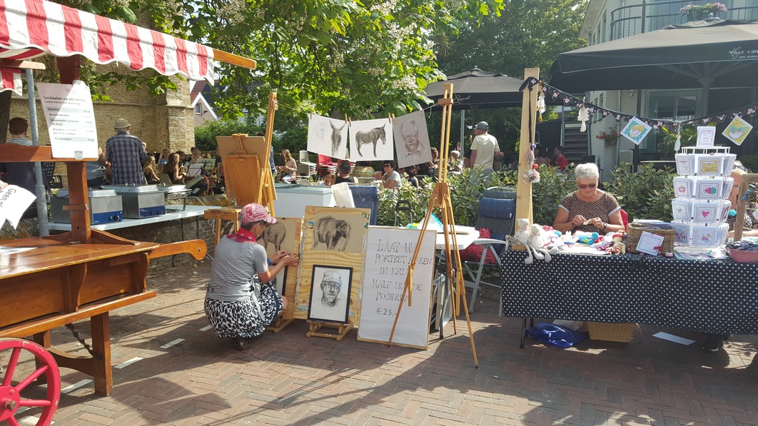 Onze vakantie is dan wel voorbij, maar Nederland is natuurlijk wel in vakantiestemming. Overal wordt van alles georganiseerd. In, of op de grens van de bible belt was zaterdag een braderie(tje). Oud-Vossemeer “was the place to be”. Marleen was er vorig jaar wezen portret tekenen en was nu weer uitgenodigd. Gezellig met veel muziek, maar met te weinig bezoekers.
