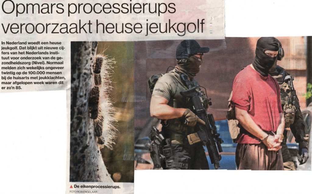 Het is vakantietijd en dus komkommertijd op televisie en in de kranten. Toch zijn er wel interessante of opzienbarende artikelen te vinden. Bijvoorbeeld hoe Nederland de eikenprocessierups te lijf gaat. Misschien een beetje overdreven