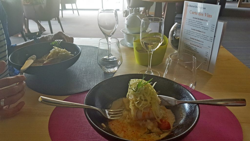 Alle restaurants waren voor de avond vol geboekt. Alleen in een hotel-restaurant konden we nog tussen de middag eten. Een stijf restaurant met een ober strak in het pak. Het eten was wel erg lekker.