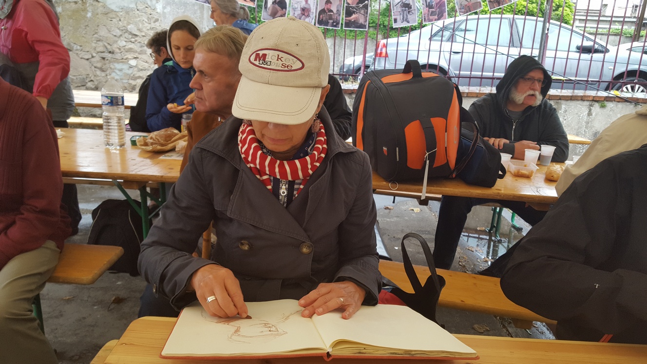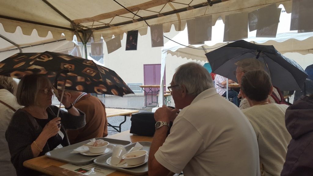 Buienradar voorspelde 90% kans op regen. In de buurt was er een kleine brocante. Daar moesten we naar toe want Marleen vindt altijd wel iets om te kopen. Ook deze keer. Terwijl de eerste druppels voorzichtig het feest gingen bederven, was Marleen de onderhandelingen gestart.
