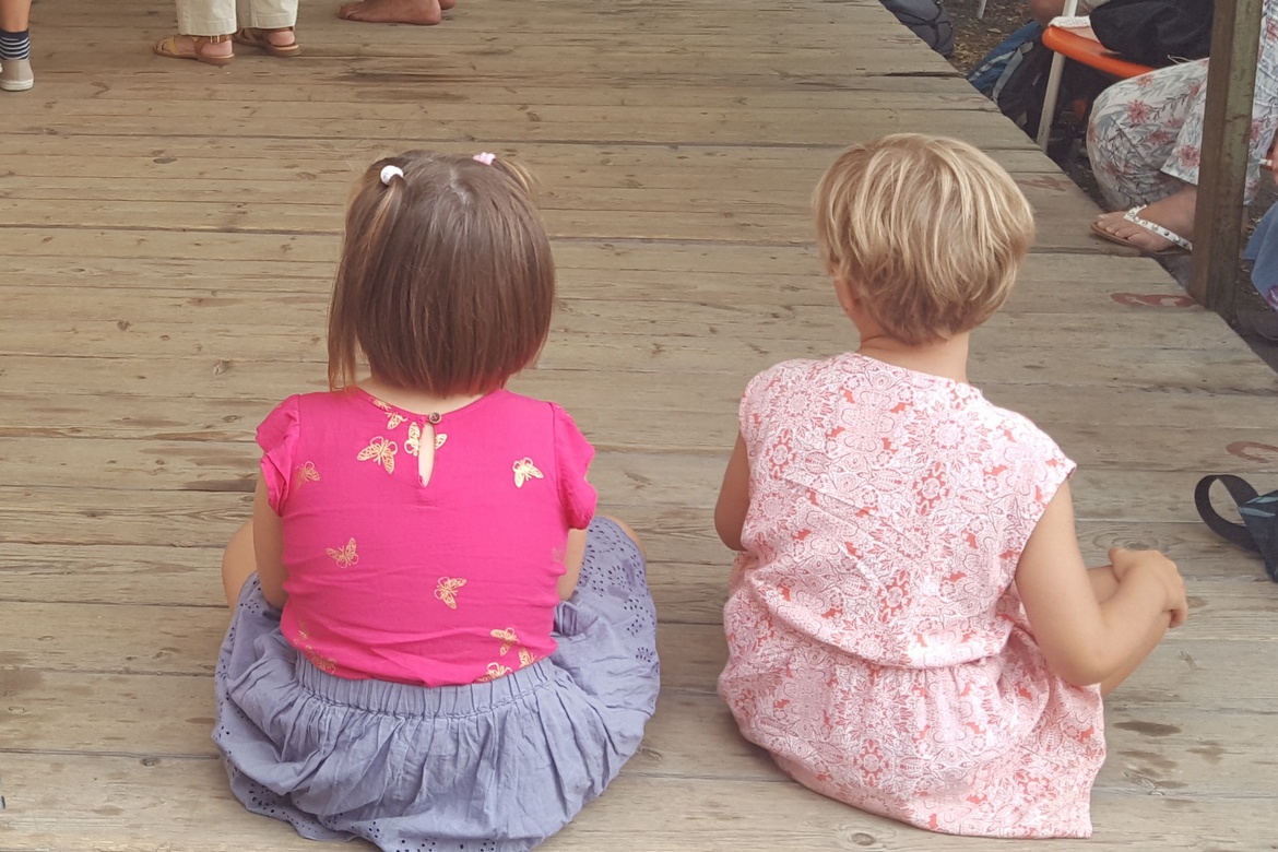 Veel kinderen zijn erg geïnteresseerd in de muzikanten.