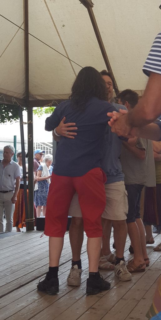 Nu was hij er weer, aan het dansen natuurlijk. Plotseling kwam er een jonge man naar hem toe. Begin 20, lang donker haar en een donker baardje. Leuke bink. Zonder een woord te wisselen gingen ze samen dansen. Een romantische dans (Mazurka) die close gedanst moet worden. Alsof ze dit al jaren zo doen. Even later dansen ze weer met vrouwen. Iedereen danst met iedereen.